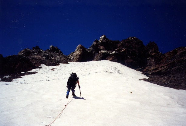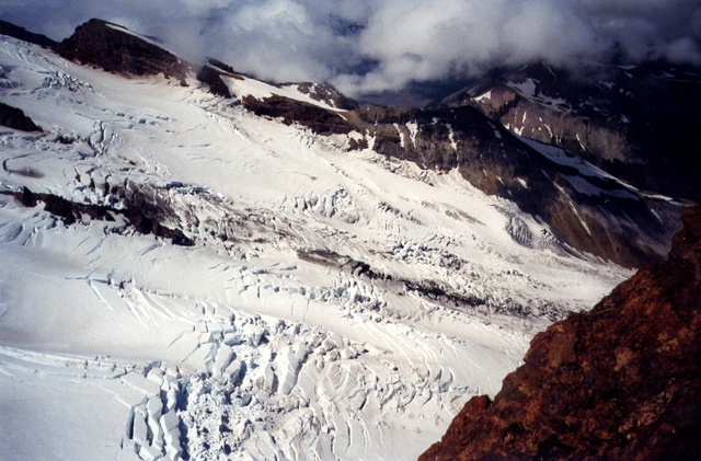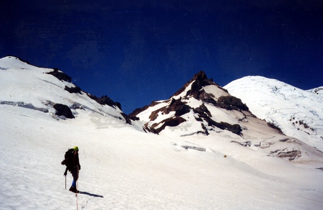 snow slopes of the upper Whitman Glacier to the summit rocks.